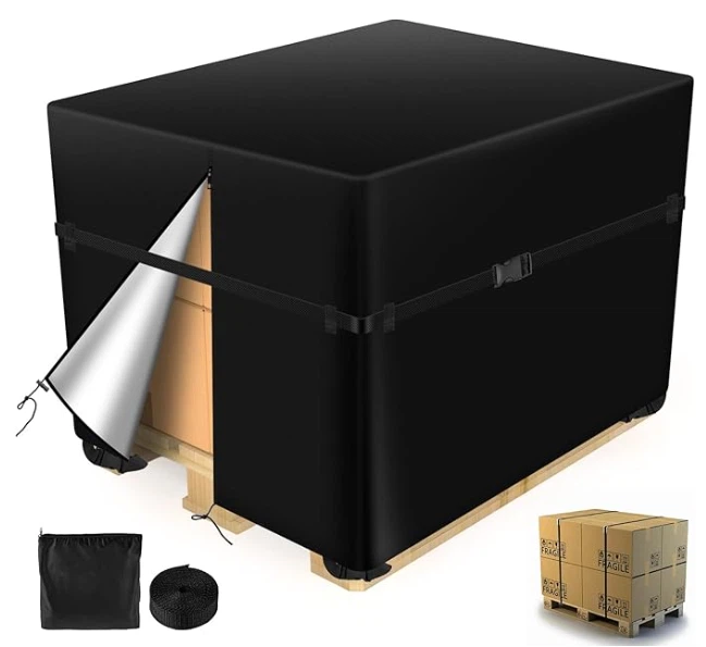 部分托盘罩专为紫外线敏感货物设计,具备抗 UV 功能,可防止货物因阳光直射而受损。
